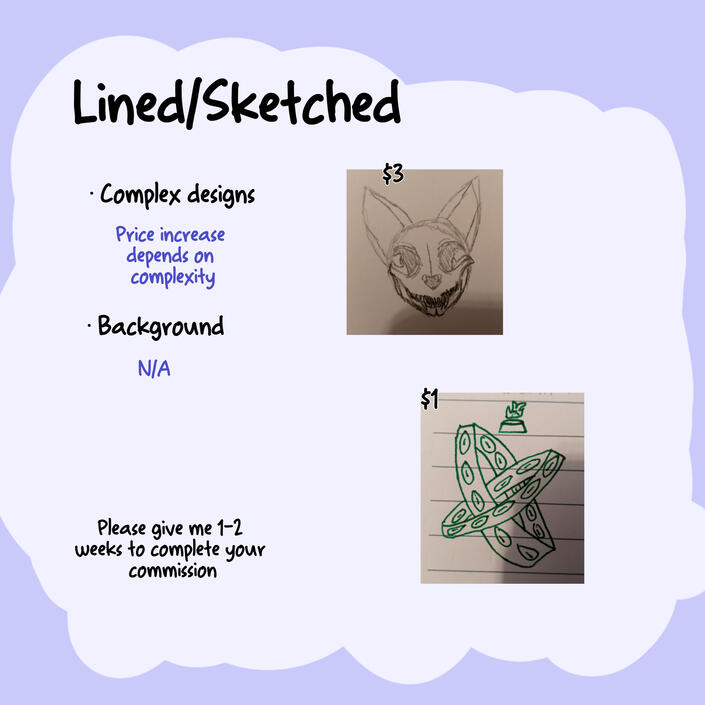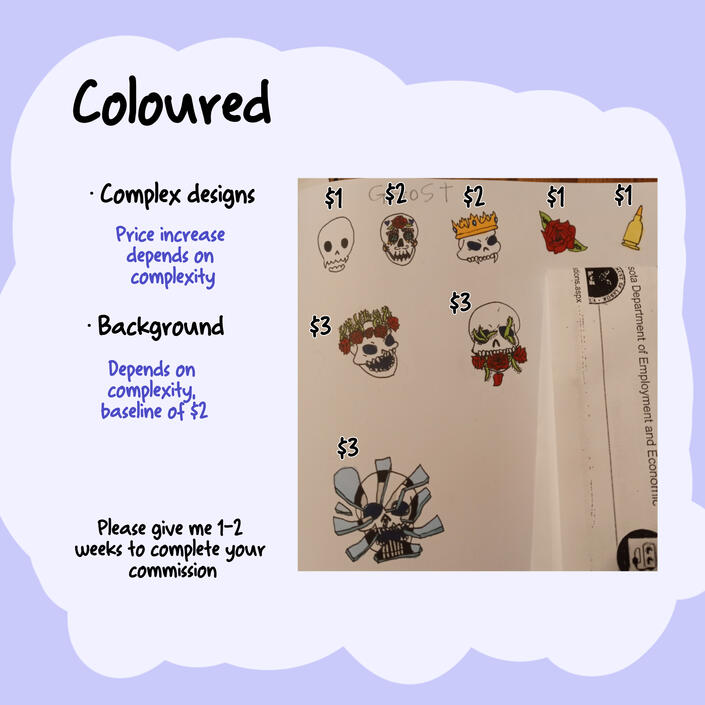 The commission sheets for my art, with traditional, digital, and tattoo art versions.
